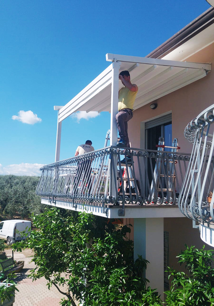 HTC Infissi seleziona tende da sole a caduta di qualità e le installa esclusivamente con tecnici interni qualificati, garantendo stabilità della struttura, corretta tensione del telo e durata nel tempo.